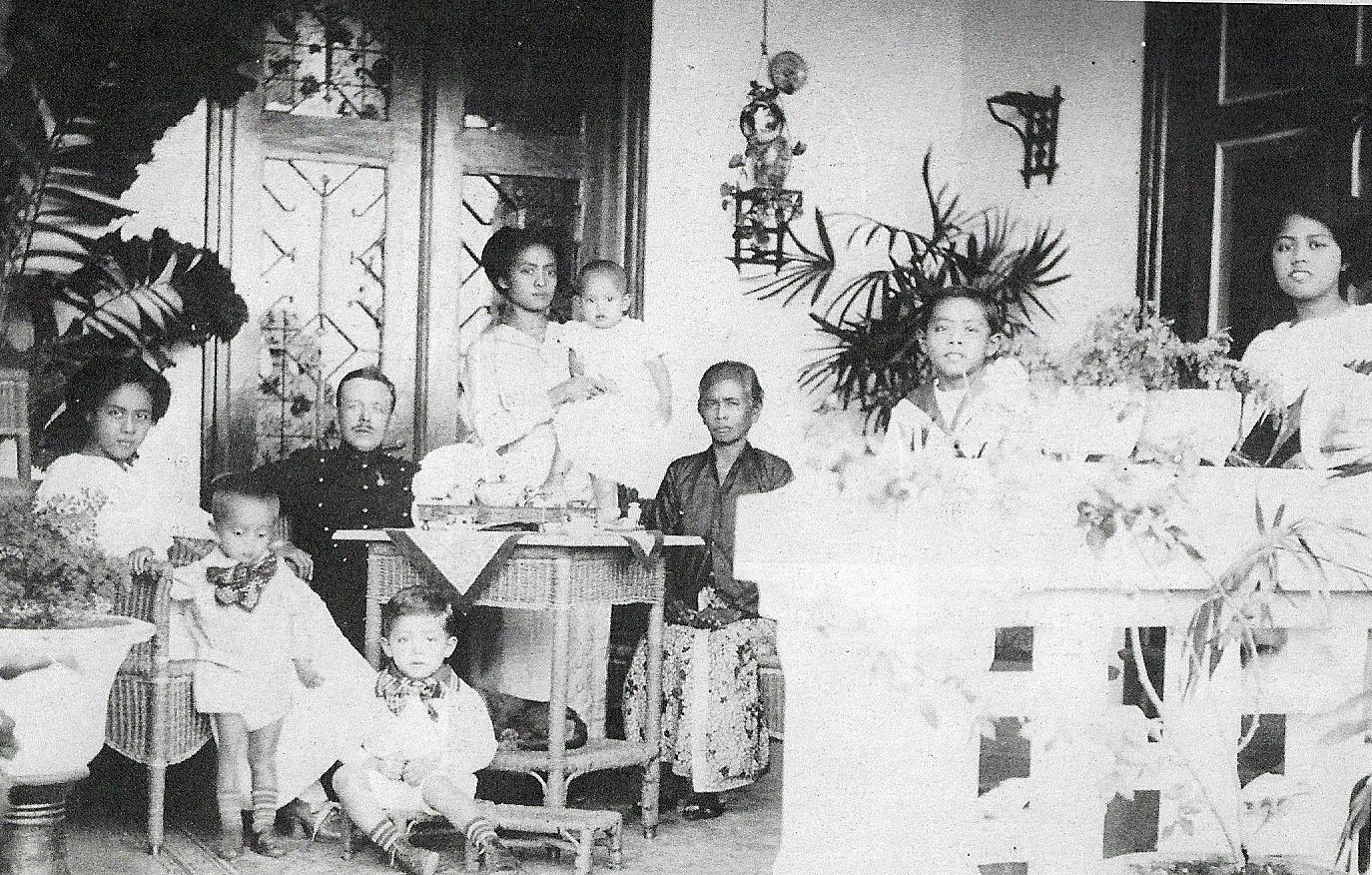 Bron: De familie Boon met in het midden Tjang onze overgrootmoeder. Opa Cor (Knil) daarnaast oma Fela met lies op haar arm . Het meest linkse jongetje is mijn vader Alexander Boon met daarnaast zijn jongere broer Cornelis (Kees) De jongen rechts is Jan Boon ,de latere schrijver Tjalie Robinson. — bij In het Oude Nederlands Indie.