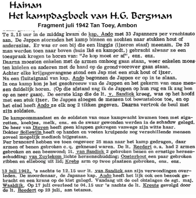 Radiotelegrafist Henri George Bergman , geboren 1921 Tandjong Pinang, werd geïnterneerd in krijgsgevangenenkamp Tan Toey op Ambon.