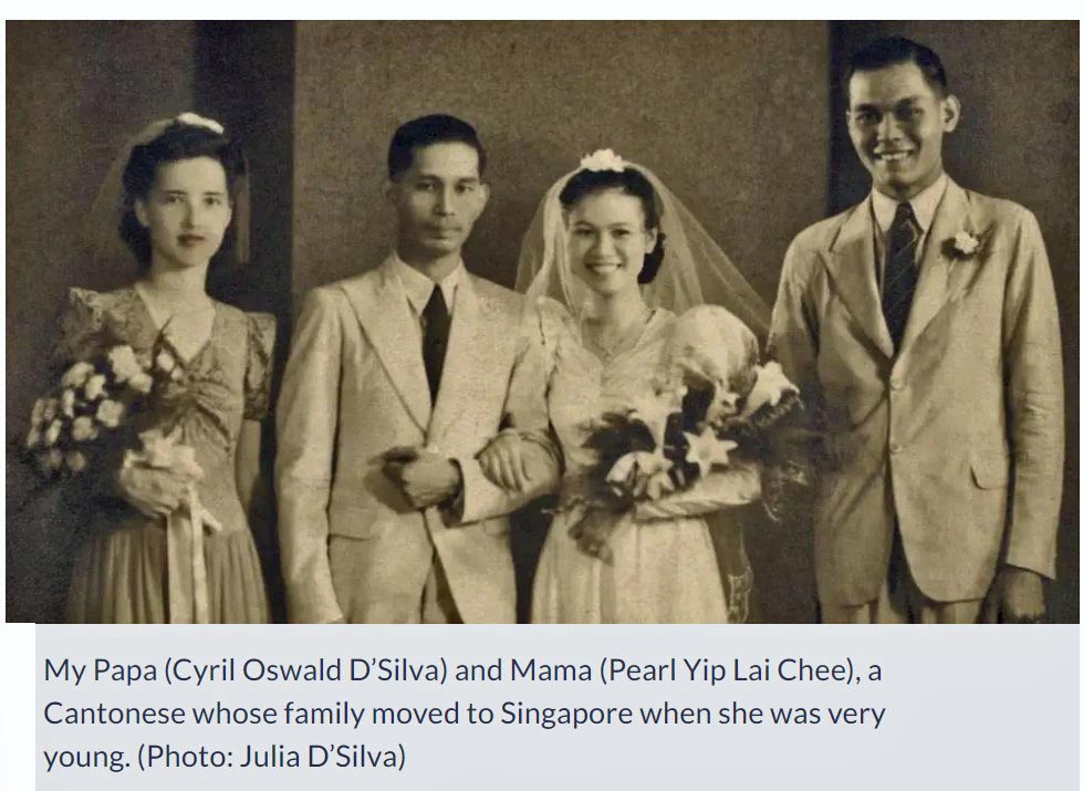 Eurasians with Portuguese roots married Eurasians with Dutch roots, and British roots, and so on. Chinese, Indians, Peranakans and Malays were also part of the fabric. So quite unlike Eurasians in other parts of Asia, Singapore Eurasians have multiple ethnic roots. Take my friend Celeste. She has a mix of Portuguese and Dutch ancestry from her mother, and another blend of Spanish, Filipino and Burmese from her father. CNA