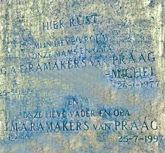 Wien hertrouwde met Jules Marie Antoine Ramakers van Praag die haar 20 jaar overleefde en in 1997 in dit graf werd gezet. Zoon van Jules Jacques Louis Arthur RvP en Adele Westerkamp (nazaat oude Indische famillies Phefferkorn en Senn van Basel) Ten tijde van de geboorte van Jules Marie in 1906 was zijn vader Jules Jacques nog klerk bij BOW te Batavia. Maar later werd hij journalist en had in 1928 een relatie met Maria Anna Beiten.