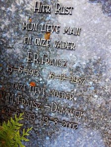 victorinadamwijkVictorine Margaretha Damwijk, roepnaam Vic, weduwe van Edwin Fransz, werd hier in 2002 begraven. Twee zonen Fransz zijn van haar bekend.