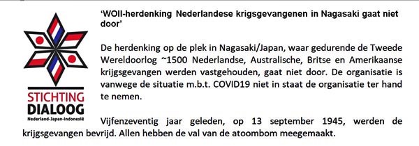 Herdenking te Nagasaki gaat niet door