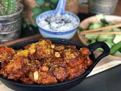Deze pittige Indische kip met seroendeng is niet geschikt voor watjes 😉