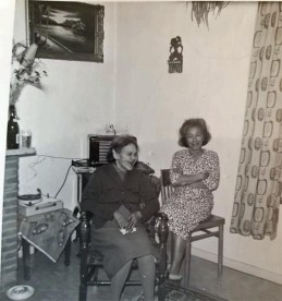 Mevrouw de Wilde links op de foto en Mevrouw Anna Waldeck konden het zeer goed met elkaar vinden Ze kwamen beiden vanuit Indonesië in de Prinses Beatrixstraat te Ooij /Erlecom te wonen .