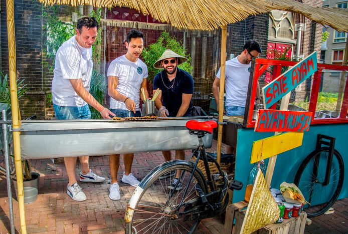 Op een warme dag staat op het pleintje voor de Hildegardiskerk in het Oude Noorden een rokende houtskoolgrill op een bakfiets. Drie vrienden voorzien iedereen die langskomt van saté. Achthonderd stokjes hebben ze gemaakt. Je zou het niet zeggen, maar achter deze vrolijke chaos die de Bite Club heet, gaat een verhaal over het coronavirus schuil. AD.nl