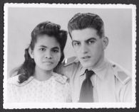 Betsy Souisa en Adrie Deijs verloven. Foto 2 midden is hun huwelijk. Foto rechts is  Betsy’s ouders.