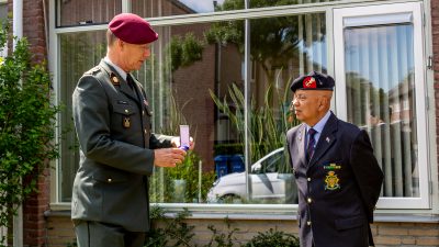 Ted Hielckert uit Zwolle (Nieuw Guinea-veteraan 1961-1962), nam de medaille in ontvangst. RTV Focus
