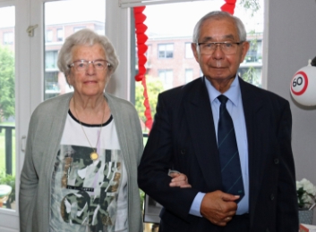 Het echtpaar Van den Brink- van Bruchem was 14 juli 60 jaar getrouwd. Burgemeester Reinie Melissant feliciteerde het echtpaar met dit jubileum.