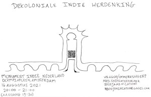 Benjamin Caton organiseert 16 aug 20.00 Olympiaplein, Amsterdam: U bent van harte uitgenodigd bij de eerste officiële Indië herdenking van het Monument Indië-Nederland te Amsterdam met een dekoloniale insteek. De herdenking wordt georganiseerd voor het herdenken van de gruwelijkheden die in voormalig Nederlands-Indië en Indonesië hebben plaatsgevonden: de Tweede Wereldoorlogsperiode, de koloniale periode daarvoor, de dekolonisatieoorlog en het (bersiap)tijdperk erna.