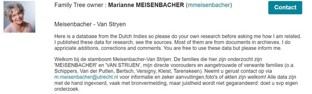 Ik heb ook veel informatie van betrokken personen zelf over hun familie hier vastgelegd. Dus, als u uw voorouders niet kan vinden, neemt u alstublieft contact met me op. Ook als u aanvullingen, correcties, gescande foto’s etcetera heeft.