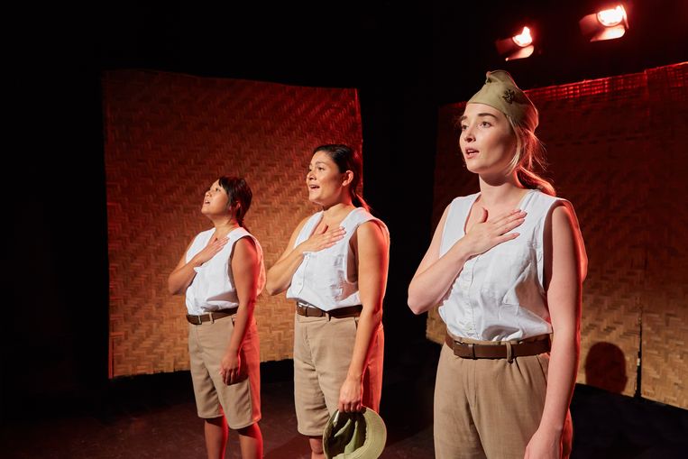 De voorstelling Rumah Saya van Elise Doll (rechts) met Lienke Iburg (midden) en Kim Pendjol.