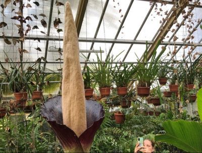 Bijna een kwarteeuw heeft het geduurd, maar ‘de penisplant’ in de Hortus botanicus in Leiden is vrijdag tot bloei gekomen. De Amorphophallus decus-silvae, zoals de plant officieel heet, kwam voor het laatst tot bloei in de Hortus in 1997. ‘En het is pas de derde keer dat de plant in Europa tot bloei komt’, zegt een uitgelaten kaschef Rogier van Vugt. ‘Deze plant is echt zeldzaam.’ Omroep West