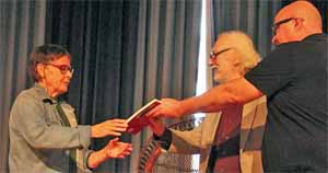 Peter van Dongen heeft het omslag van ‘De postkoloniale spiegel’ ontworpen en werd hiervoor bedankt en ook Olf Praamstra werd in het zonnetje gezet voor al het werk wat hij achter de schermen heeft verzet.