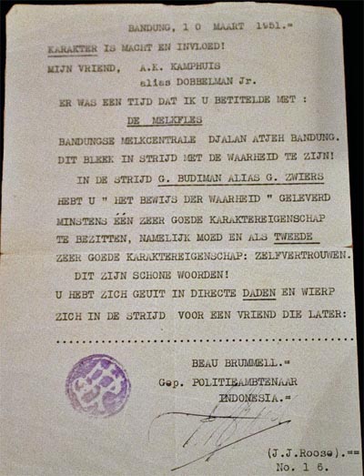 A.K. Kamphuis moet iets gezegd hebben over Geert Zwiers (geboren 1919 in Hoogeveen). Hij opteerde in januari 1950 voor de Nederlandse nationaliteit, ging de naam Budiman gebruiken en schreef later een brief aan minister-president Drees over onrechtmatige arrestaties van Nederlanders te Java en sommigen werden als gevangene naar Nederland gebracht.