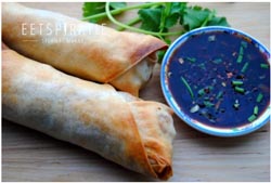 Niets is lekkerde dan LOEMPIA SEMARANG. Want de inhoud is niet TAOGE maar BAMBU SPRUITJES en wordt gegeten met uien ,sprietjes en een saus.