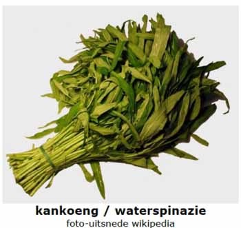 Ja Kankoeng door Frits Geuther waterspinazie genoemd ,dat groeit en bloeit zowat in elke kreek in Suriname ! Toen mijn moeder dat zag werd ze helemaal gek Kangkoeng ! zo voor het oprapen ! Ze vroeg of het dienstmeisje wat eruit wilde halen haar antwoord “” Mevrouw dat is Dagoeblat ( hondegroente ) dat eten wij niet !”” Toen heeft ma het maar zelf uitgehaald ! Er zijn zat Creolen ,die met een hongerige maag naar bed gaan ,terwijl ze gewoon wat Kangkoeng uit de gracht/sloot/kreek kunnen halen .Dagoeblad ,hondeblad eten wij toch niet ! Zo zitten ook die rivieren propvol vis maar ja vissen vergt inspanning ! Beginnen wij niet aan .Welke groenten zijn wel populair bij die Creolen ? Hou je vast ! Doperwtjes in blik/pot van de Albert Heijn ! Als je van honger omkomt in Suriname had je toch eerder bij de psychiater langs moeten gaan ! 😂😁🤣.Suriname (165.000 km2 ) is beduidend groter dan het eiland Java met 125.000 km2 maar Suriname heeft maar + 600.000 inwoners en Java + 140 miljoen .Als je een beetje slim bent in Suriname hoef je niet eens naar de Supermarkt voor je belanja ,De kuststrook is uitermate vruchtbaar en grond buiten de stad is goedkoop en voor vissen heb je ook geen vis-vergunning nodig .Toch wemelt het in Suriname van de supermarkets en ze draaien als een tierelier ,waarom ? Status ! Alles draait in Suriname om status !