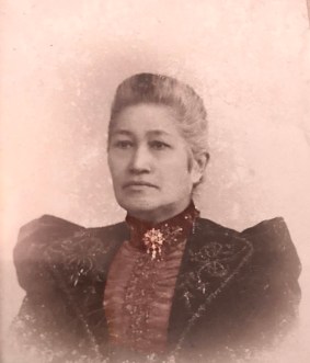 Rechts: De aanname is dat ze hier rouwkleding draagt voor haar man Roelof Cornelis van der Palm die in 1899 te Kampen overleed.