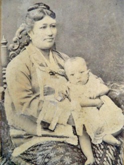 Links: Amelia, met vermoedelijk haar dochter Henriette Theodose Adrienne in 1878, mogelijk te Bandoeng