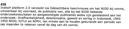 Het Indisch Platform 2.0 heeft een kort geding aangevraagd bij een Amsterdamse rechtbank.
