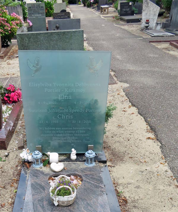 Ze liet een dochter na en haar man Chris Portier (Sutrisno Johannes Speedy) die 21 jaar later werd bijgezet. Chris was geboren in 1965 en volgens de tekst ook geveld door een slopende ziekte, net 50 jaar.