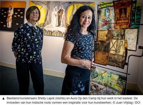 Nee, niet Indonesisch. Indonesische mensen, zijn mensen uit Indonesië. Aura Op den Camp en Shelly Lapré zijn Indisch. Indische meisjes. ‘Indisch’ is één woord voor een heel diverse groep van gemengd bloed. Maar de expositie van de twee kunstenaressen in het Kasteel Geldrop heeft juist te maken met wat Indische mensen verbindt.