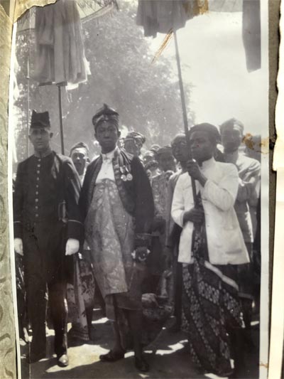 De Indonesische notabele was begeleid door dienaren die parasols dragen.