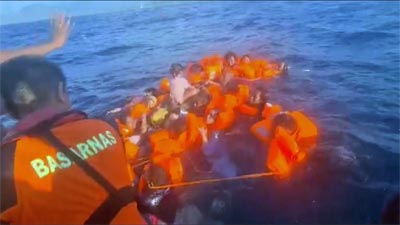 *** NU.nl:Een passagiersboot met 240 mensen aan boord is maandag in brand gevlogen voor de kust in het zuiden van Indonesië. Reddingswerkers hebben 226 mensen uit zee kunnen halen. 14 anderen kwamen om het leven. (Zie de film)