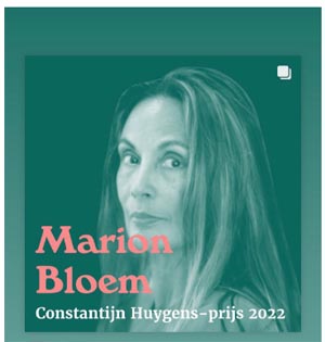 De romans, verhalen en gedichten van schrijfster Marion Bloem zijn vandaag bekroond met de Constantijn Huygens-prijs. Dat is bekendgemaakt in het NPO Radio 1-programma Kunststof.”Niet alleen het recente en monumentale Indo uit 2020, dat iedereen moet lezen die is geïnteresseerd in het thema identiteit, is persoonlijk, origineel, meeslepend en geschreven vanuit een grote maatschappelijke betrokkenheid. Vanaf het eerste boek geldt dit voor haar gehele oeuvre”, zegt de jury van de Jan Campert-Stichting, verantwoordelijkheid voor de prijs. NOS
