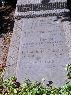 Frederik Nicolaas Thiange geb 1850 in Nijmegen, overleden 1910 te Den Haag. Zoon van een paardenarts . Zijn rouwadvertentie meldt: ” in leven luitenant-generaal, chef v/d generalen staf ” Prins Hendrik was op zijn begrafenis. Zie deze necrologie. Frederik heeft niet in Indië gediend en huwde te Den Bosch in 1874 met…