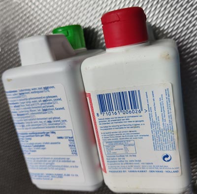 Ons ‘huismerk’, maar ik gebruik ook wel eens Kecap Benteng uit Tangerang omdat vele in onze familie dat lekkerder vinden, voor de kecap asin is dat Cap Menjangan: