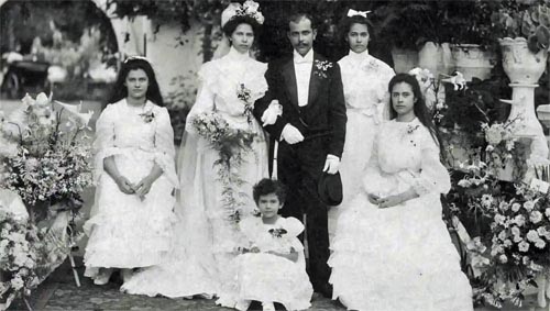 Links van het bruidspaar: Troel Kloppenburg. Aan de rechterkant: Mien en Marie Kloppenburg.