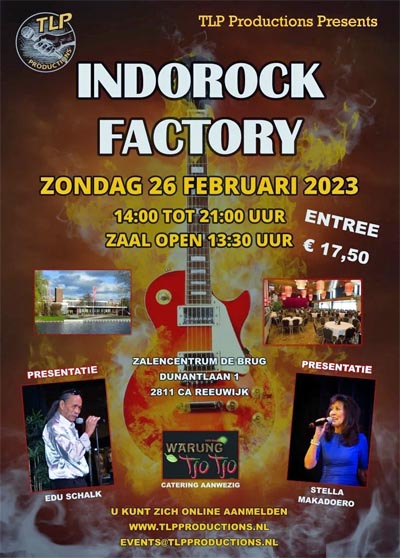 Indorock Factory wordt gehouden op zondag 26 februari 2023 in Zalencentrum De Brug Dunantlaan 1 2811 CA Reeuwijk.