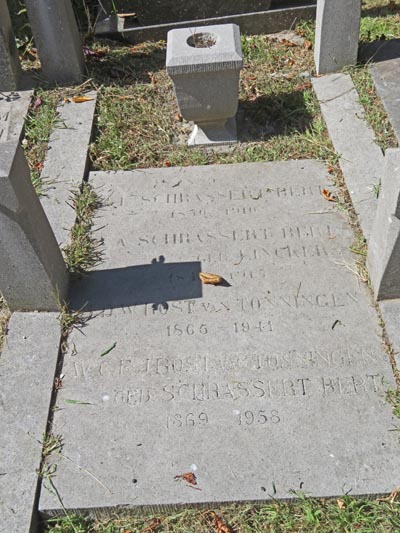 Hier zijn begraven het echtpaar Geertruijda Alijda Linckers (1840-1915) en de politiecommissaris te Hellevoetsluis de heer Reinier Frederik Schrassert Bert (1830-1910), hun dochter en schoonzoon Rost van Tonningen die ze vermoedelijk niet hebben gekend.