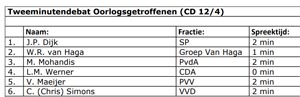 Volgende week zijn de stemmingen voor 4 door SP, PVV, PvdA en Haga ingediende moties.