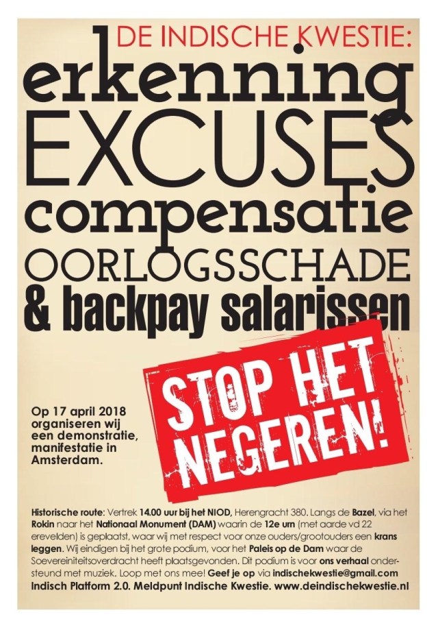 Reden voor Indische Kwestie|Indisch Platform 2.0. wederom aanwezig te zijn op de publieke tribune en mensen op te roepen mee te gaan. Men verzamelt om 13.00 bij de piano in de hal van CS Den Haag.