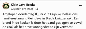 De Bredase familie Klavert is een crowfundingsactie gestart voor Leo en Richard Klavert. Het duo zag op donderdag 8 juni hun restaurant Klein Java in vlammen opgaan. Niet alleen het restaurant werd verwoest, maar ook het woongedeelte. indebuurt Breda