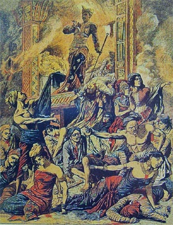 De eerste Poepoetan vond plaats in 1849. Toen kwam een Nederlands leger van 5000 soldaten, 100 schepen en 3000 matrozen aan wal in Bali met als opdracht om de Rajas (koningen) van twee koninkrijken op Bali te doden of gevangen te nemen. Onderhandelen met deze koningen behoorde niet tot de opdracht die de Nederlandse generaal Michiels had gekregen. Toen de Balinezen geen uitweg meer zagen, vond de eerste Poepoetan plaats. Duizenden Balinezen stormden op de Nederlandse soldaten af, gewapend met niets of een kris. Duizenden Balinezen vonden de dood. Slechts 34 Nederlandse soldaten sneuvelden.