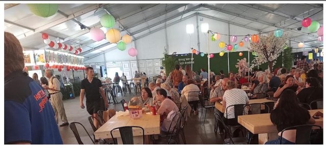 De foodcourt-opzet vind ik een succes, maar ja, als het té druk is dan is het meer wachten en niet zitten. De kraampjes staan aan de kanten van de grote tent en in het midden kunnen mensen zitten. Eerst zelf iets kopen , ook dranken, en daarmee naar een tafeltje gaan. Er is geen bediening meer aan tafel.