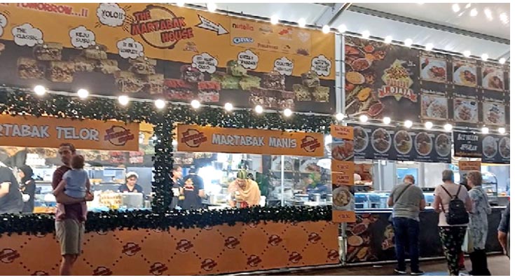 Wandelend over de Grand Pasar en richting de Foodcourt (voorheen eetwijk) kom je bijv het standje van de Moesson tegen. Traditioneel is er soms te weinig zitplaatsen voor het tongtongpodium . Ayoooh , ik moest staan bij de show van Ais Lawa Lata en Wieteke van Dort in Tante Lien-stijl.
