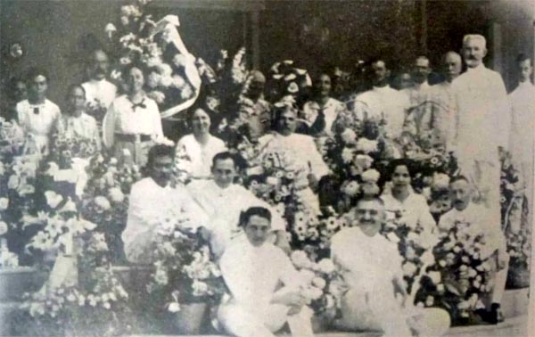 De Heer en Mevrouw Soesman te midden van familieleden, vrienden en bekenden. Dat is het bijschrift dat De Reflector (1919) geeft bij een grote foto. Indische Schrijfschool
