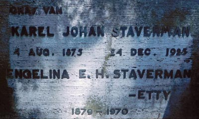 Hier werd de as begraven van Karel Johan Staverman. Hij kwam ter wereld 4 augustus 1875 in Batavia en overleed 24 december 1925 in Den Haag.