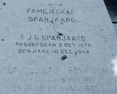 Ernst Jacobus Gijsbertus Spanjaard, geboren in 1879 te Pasoeroean overleed in 1954 in Den Haag. Hij was zoon van Geertruida Cornelia Huffenreuter (1846 Batavia-1890 Soekaboemi) en Robbert Hendrik Spanjaard (1844 Haarlem-1907 Batavia), ingenieur bij de Staatsspoorwegen. Ernst was chemiker bij suikerfabrieken te Java. zoals sf Ketangoegan te Brebes bij Tegal,