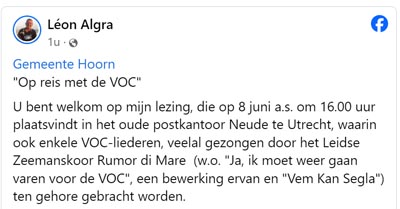 8 juni Lezing: “Op reis met de VOC”