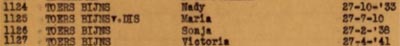 De meeste vrouwen en kinderen uit mijn familie zijn niet vermeld in de lijsten van het Rode Kruis. Ik vond wel het gezin Toers Bijns. Moeder met drie dochters. (vader werd onthoofd) Zie de foto uit ca 1949, de zussen met jongste broertje