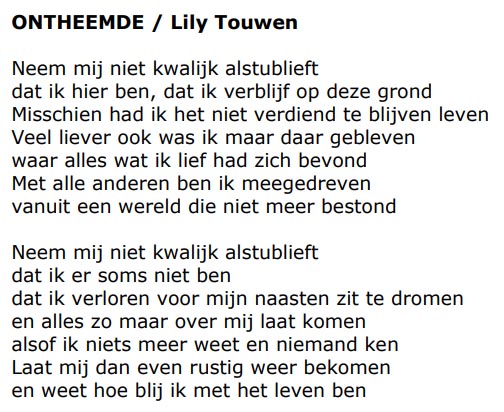 Nog meer het gedicht van mw. Lily Kloots-Touwen en haar indrukwekkende voordracht.