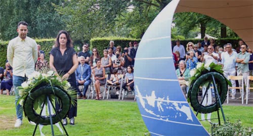 Bij de Indië-herdenking in het Enschedese Blijdensteinpark waren zo’n 250 bezoekers. Sie Dhian Ho was een van de sprekers