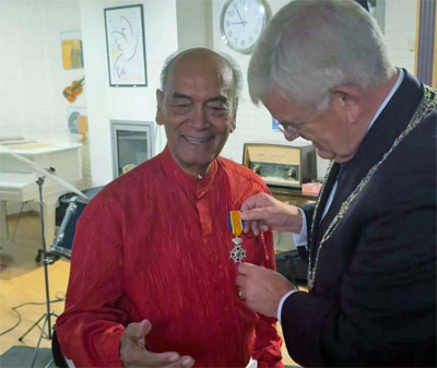 De burgemeester bracht het heugelijke nieuws dat het zijne Majesteit de Koning heeft behaagd om de nog oudst levende en nog steeds optredende Indo-Rocker Hans Bax te benoemen tot RIDDER IN DE ORDE VAN ORANJE-NASSAU.