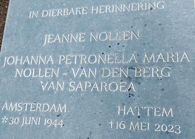 Johanna Petronella Maria van den Berg van Saparoea (1944 Amsterdam-2023 Hattem) heeft niet in Indië geleefd. Ook niet haar ouders en grootouders. Haar overgrootvader wel enkele jaren als kind. Zijn ouders (1789 en 1791) en twee grootmoeders (1770) waren er geboren.