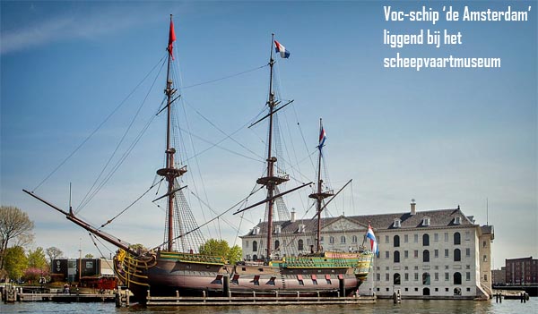 Over ‘de Amsterdam’, het spiegelretourschip bij het scheepvaartmuseum.