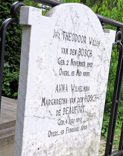 In 1995 was bijgelegd het lichaam van Theodoor Willem van den Bosch, geboren 1913 in Den Haag van de ouders Johannes Hendrik Otto van den Bosch (1869-1940) en Jeanne Francoise Marie Rijnen(1879-1915) Zie eerder topic, zerk 1 en zerk 2.